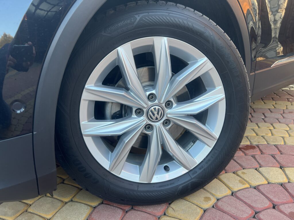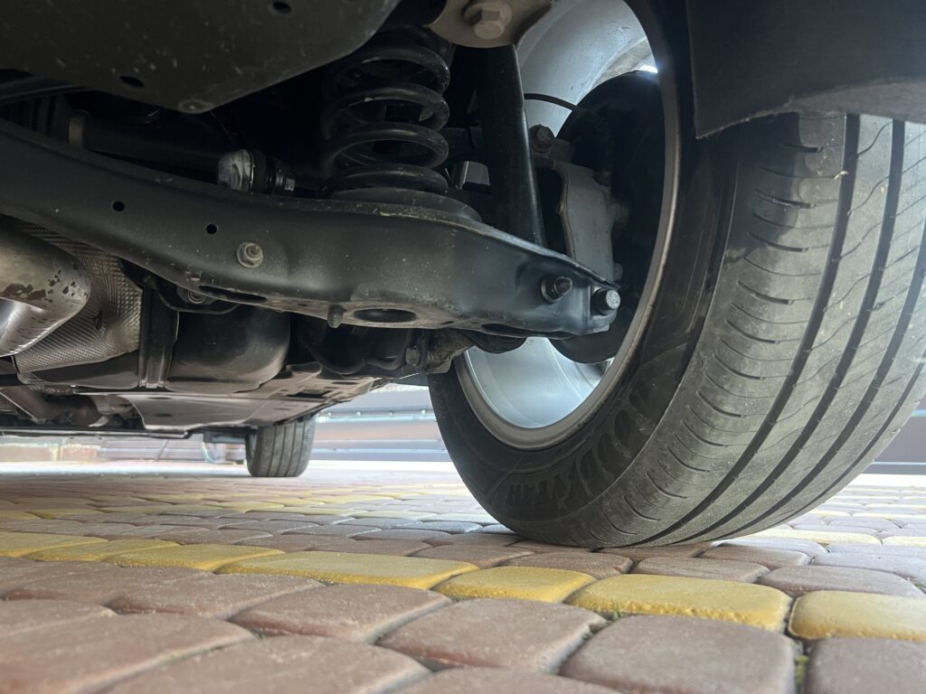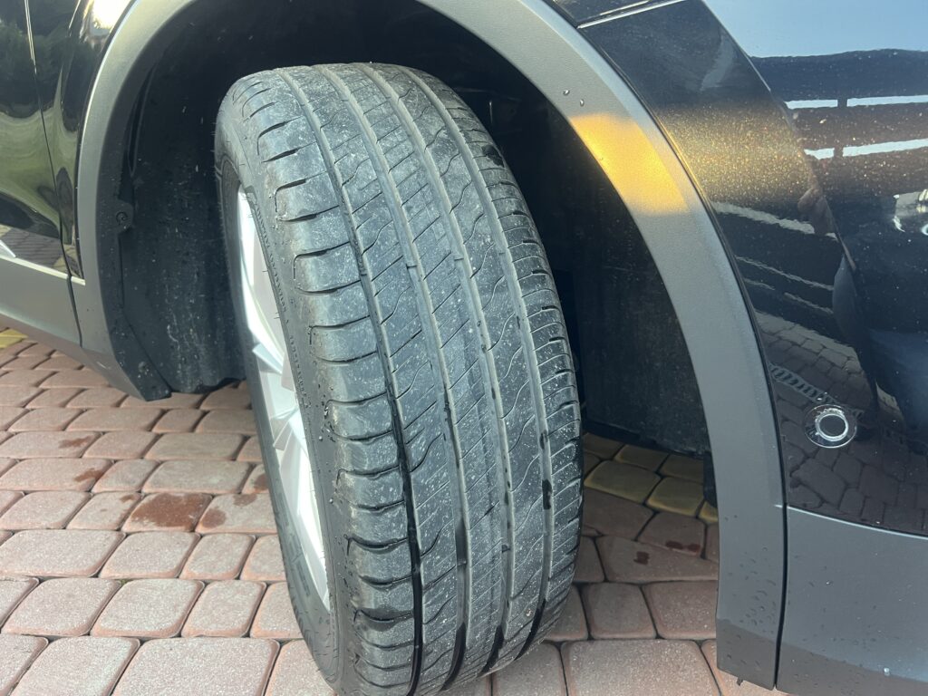 Opony z połowy 2024r zużyte max 5% – środek auta totalnie JAK NOWY nie posiada żadnego zużycia
